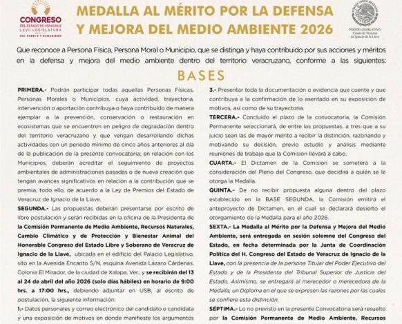 Emite Comisión convocatoria para entrega del Premio al Mérito Ambiental 2026