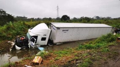 Se accidenta tráiler de Mercado Libre y lo rapiñan.