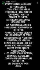 A todos mis fans y amigos de la prensa quiero compartirles que hemos decidido darle fin a nuestro compromiso y nuestra relación de pareja, posteó Christian Nodal en su cuenta de instagram.