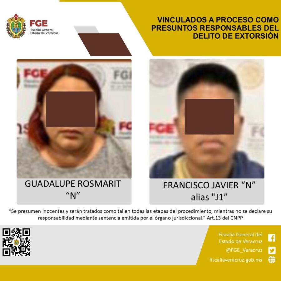 Coatzacoalcos, Ver., 15 de octubre 2025.- La Unidad Especializada en Combate al Secuestro y la Extorsión obtuvo vinculación a proceso en contra de Francisco Javier “N” alias «J1”, presunto líder de la célula delictiva y Guadalupe Rosmarit “N”, presuntamente su pareja sentimental, como presuntos responsables del delito de extorsión agravada.