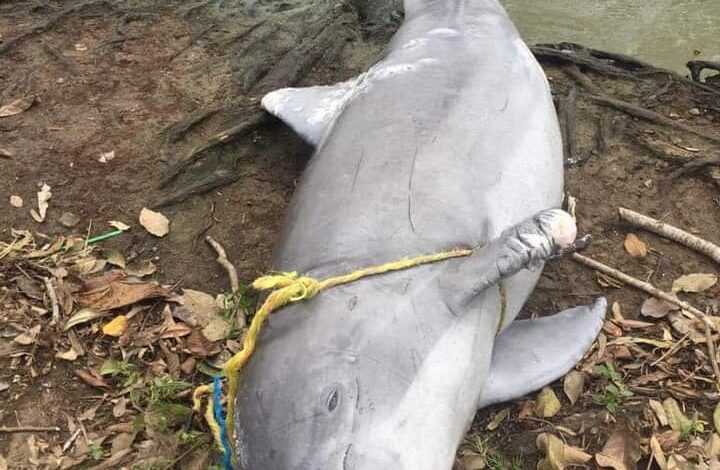 . – Un delfín sin vida fue encontrado la mañana del sábado 05 de febrero, en la orilla de las afluentes del rio Papaloapan, esto en la localidad de Playa Martínez, perteneciente a Tlacotalpan.