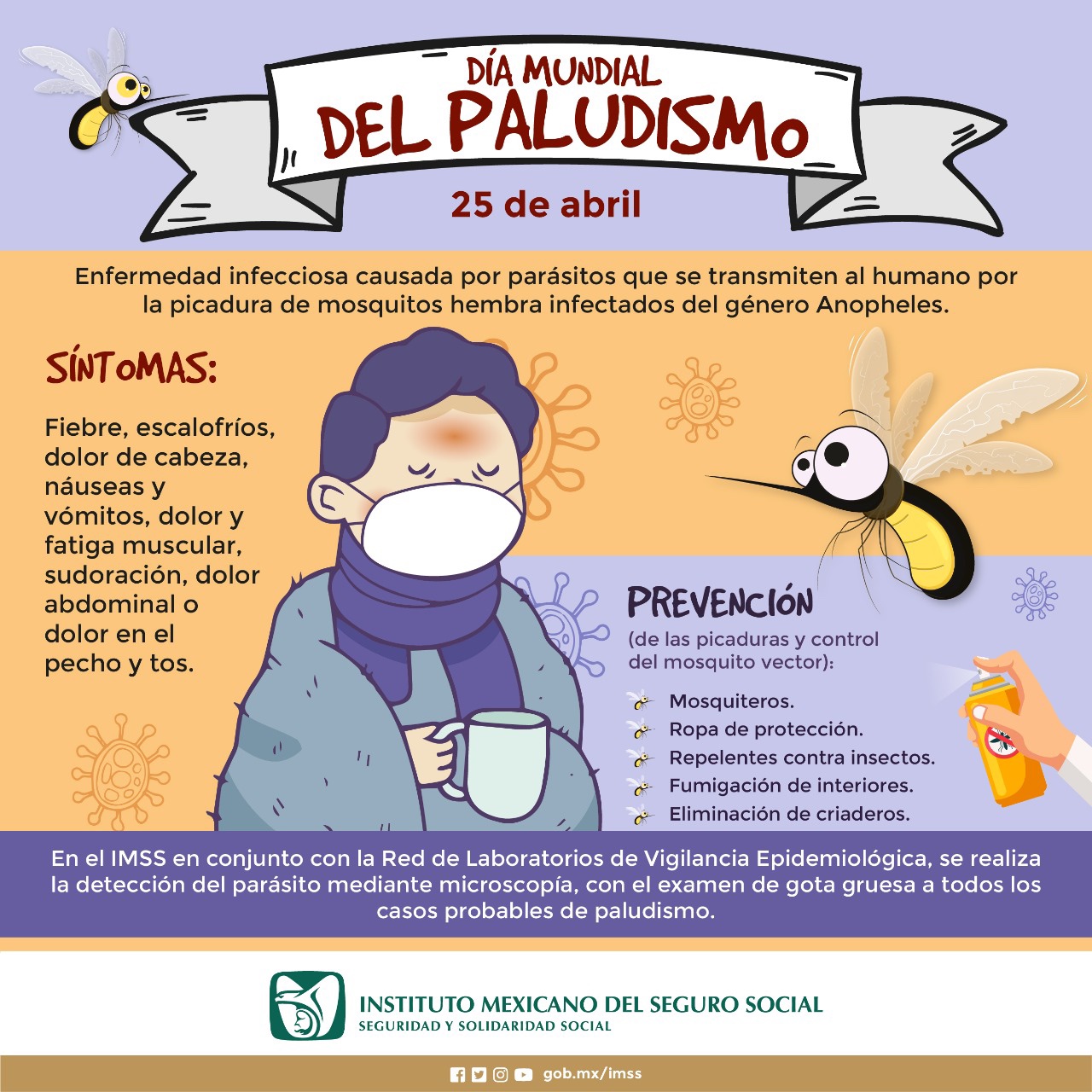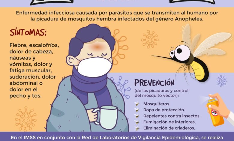 En el marco del Día Mundial del Paludismo el Instituto Mexicano del Seguro Social (IMSS) en Veracruz Sur, a través de la Jefatura de Prestaciones Médicas, informó que los síntomas de este padecimiento son similares a los del dengue y es causado por mosquitos que se reproducen en agua dulce, por lo que recomienda aplicar medidas preventivas.