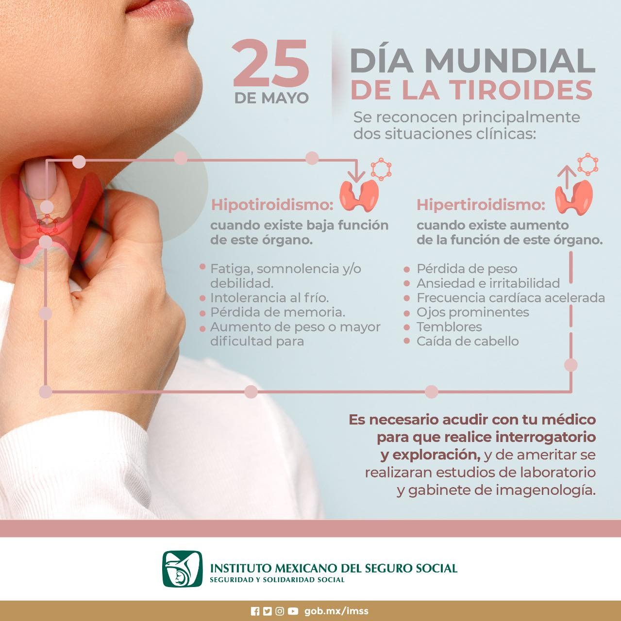 En el marco del Día Mundial de la Tiroides este 25 de mayo, el Instituto Mexicano del Seguro Social (IMSS) Veracruz Sur informa que el mal funcionamiento de glándula, ubicada en la parte frontal del cuello, ocasionan problemas en el metabolismo, frecuencia cardiaca, temperatura corporal, memoria y peso, por mencionar algunos.