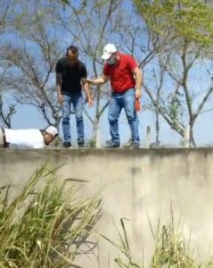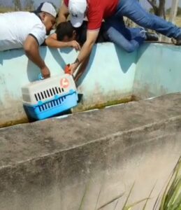 El Médico Veterinario Zootecnista Williams del Valle, acompañado de Ángel Cabrera auxiliar de Protección Civil, y David Gonzalez Tello, Director de Preservación y Medio ambiente municipal, realizaron el rescate poniendo a salvo al felino que quedó resguardado dentro de una transportadora, se le realizó una valoración por parte del veterinario y se dio aviso a SEMARNAT, quienes arribaron al municipio para determinar donde será liberada la onza o gato montes localizado esta mañana.
