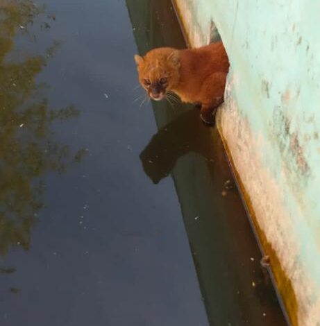 Rescatan a gato montes atrapado en un tanque de agua.