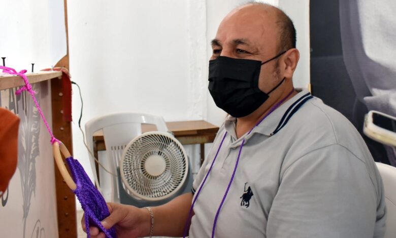 Desde hace 8 años, don José Alberto imparte un taller de macramé en el DIF Municipal de Coatzacoalcos, pues a sus 51 años se considera un hombre de retos y su discapacidad visual no es impedimento para que él pueda enseñar esta técnica, principalmente a mujeres que también quieran emprender.
