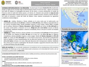 .- Se prevé que el nuevo Frente frío 23 ingrese al noroeste del Golfo de México la madrugada del jueves 20 de enero, y recorra lentamente el estado de Veracruz entre la tarde del mismo jueves y el viernes 21.