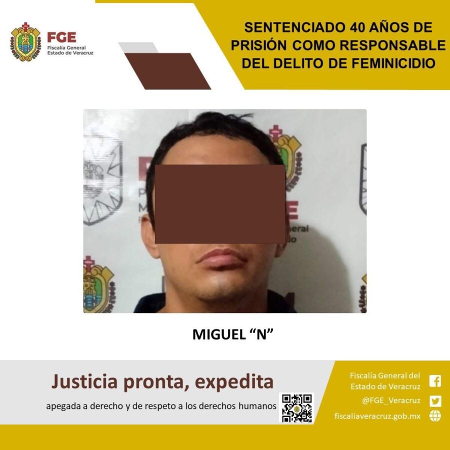 Poza Rica, Ver., 28 de enero del 2026.- La Fiscalía General del Estado, a través de la Fiscalía Coordinadora Especializada en Delitos contra las Mujeres, Feminicidio, Familia y Trata de Personas, obtuvo una sentencia condenatoria de 40 años de prisión en contra de Miguel “N”, como responsable del delito de feminicidio, cometido en agravio de una víctima cuya identidad se encuentra legalmente resguardada.