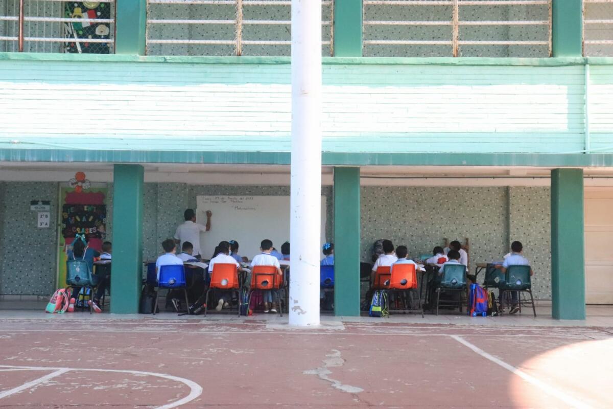 «Los salones no se pueden utilizar, para evitar que los niños corran riesgo en el salón, se decidió hacerlo así, que estén en el exterior», mencionó.