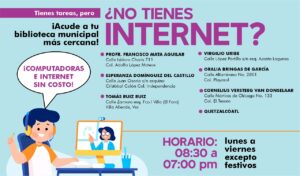 Son las bibliotecas Cornelius Versteeg Van Donselaar, Oralia Bringas, Virgilio Uribe, Esperanza Domínguez del Castillo, Francisco Mata y Tomás Ruiz, quienes ofrecen este servicio implementado por instrucción del Presidente Municipal, Amado Cruz Malpica, para beneficio de todos los usuarios de estos centros de estudios.