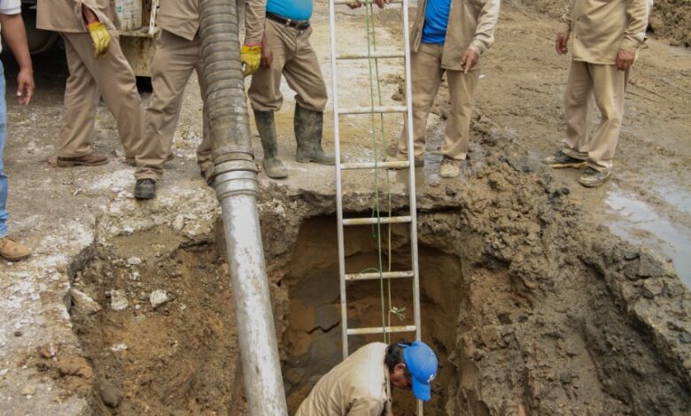 Dirección de Agua Potable y Alcantarillado repara línea de drenaje.