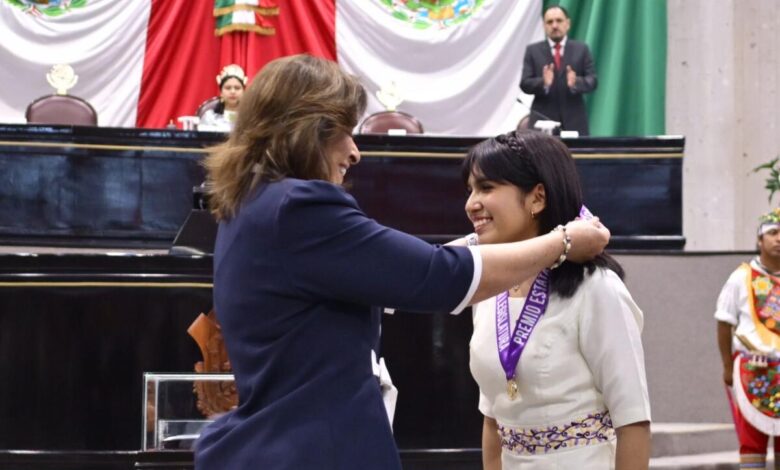 Gobernadora entrega el Premio Estatal a la Mujer a la mejor estudiante del mundo