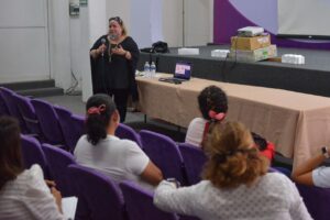 La profesora Gabriela Toral Abarca especialista en educación inicial y preescolar impartió esta plática, destacando la importancia de enseñar a los niños a través de métodos prácticos y dinámicos, para que puedan tener una educación más fluida.