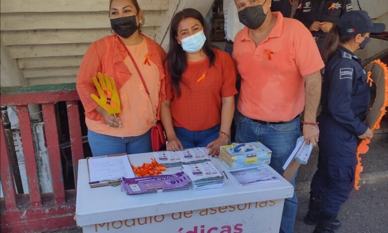 .- En el marco del día naranja, por la lucha contra la violencia hacia las mujeres, el Instituto Municipal de la Mujer en coordinación con la regiduría 12 y la Comisión Estatal de Derechos Humanos, instalaron un módulo de atención para la ciudadanía en el centro de Coatzacoalcos.