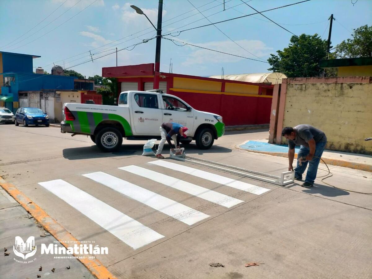 Minatitlán, Ver. – Previo al inicio de clases para educación básica y medio superior, la Jefatura de Tránsito y Vialidad Municipal, comenzó a pintar los pasos peatonales o de cebra, en diferentes escuelas de Minatitlán, esto como parte del programa de seguridad vial “Regreso a Clases Seguro”.