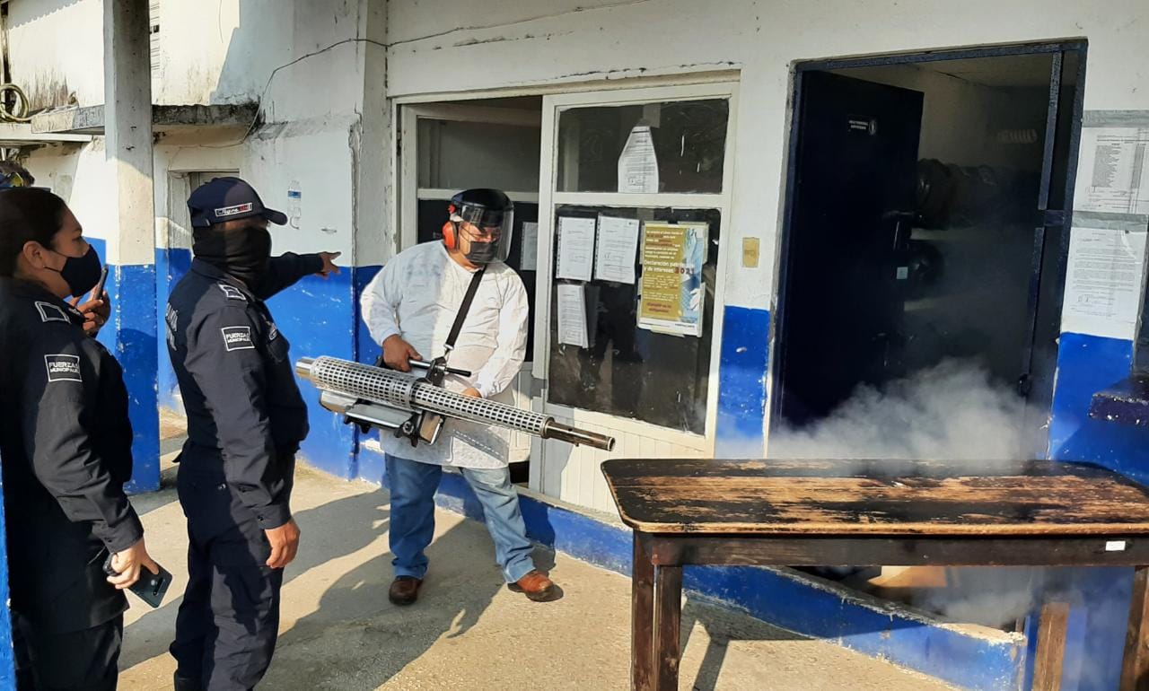 Atendiendo las peticiones de las áreas, se realizaron acciones de desinfección en las instalaciones de la Policía Municipal y la Policía Estatal.