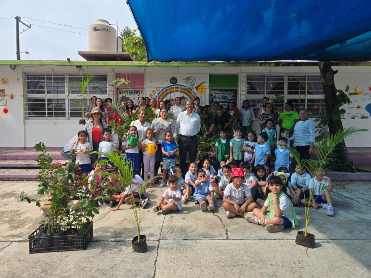 Aunado a estas acciones, se llevó a cabo la reforestación del área verde del jardín de niños Rosario Castellanos de la Colonia Santa Isabel, con un total de 20 árboles frutales y maderables de diferentes especies (almendros, guayas, uvero, guanábana, roble y framboyán) contando con la presencia del Regidor primero, Isidro Enrique Villegas García, Adriana Yolanda García Garay, directora de Educación, así como maestros y alumnos, quienes en conjunto realizaron la importante labor.