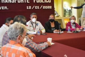 Coatzacoalcos, Ver., 12 de enero de 2022.- Funcionarios de gobierno estatales y municipales se reunieron con concesionarios del transporte público en la modalidad de urbanos para tratar temas expuestos por la ciudadanía que permitan mejorar el servicio en Coatzacoalcos.