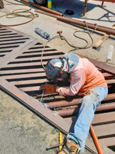 Por instrucción del Presidente Municipal, Amado Cruz Malpica, Servicios Públicos Municipales lleva a cabo las labores ante el evidente desgaste de las estructuras metálicas por el tránsito pesado e intenso de vehículos, lo cual puede provocar accidentes de personas y daños a automóviles.