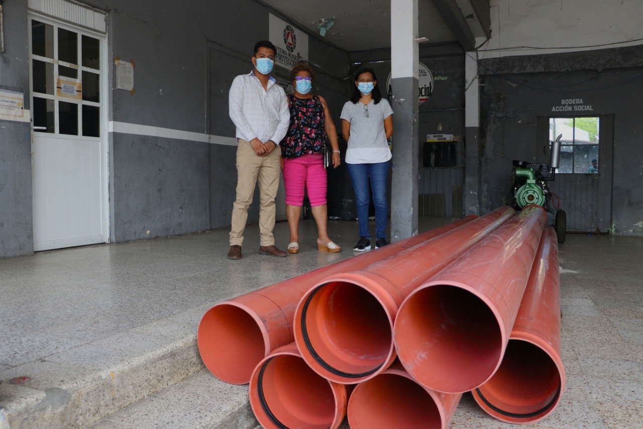Para darle pronta solución, durante la tarde de hoy, la Alcaldesa Esmeralda Mora Zamudio, recibió el material que será utilizado para esta fuga de aguas negras.