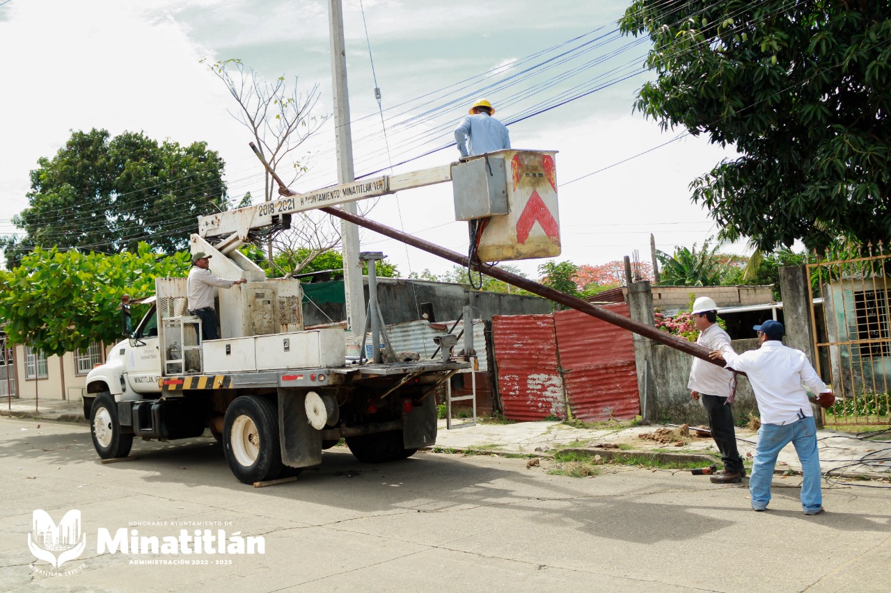 Minatitlán, Ver. – Continuando con los trabajos en la Red de Alumbrado Público y para proporcionar mayor iluminación en diferentes sectores de la ciudad, la Doctora Carmen Medel Palma ha instruido reubicar las luminarias que están en postes en mal estado.