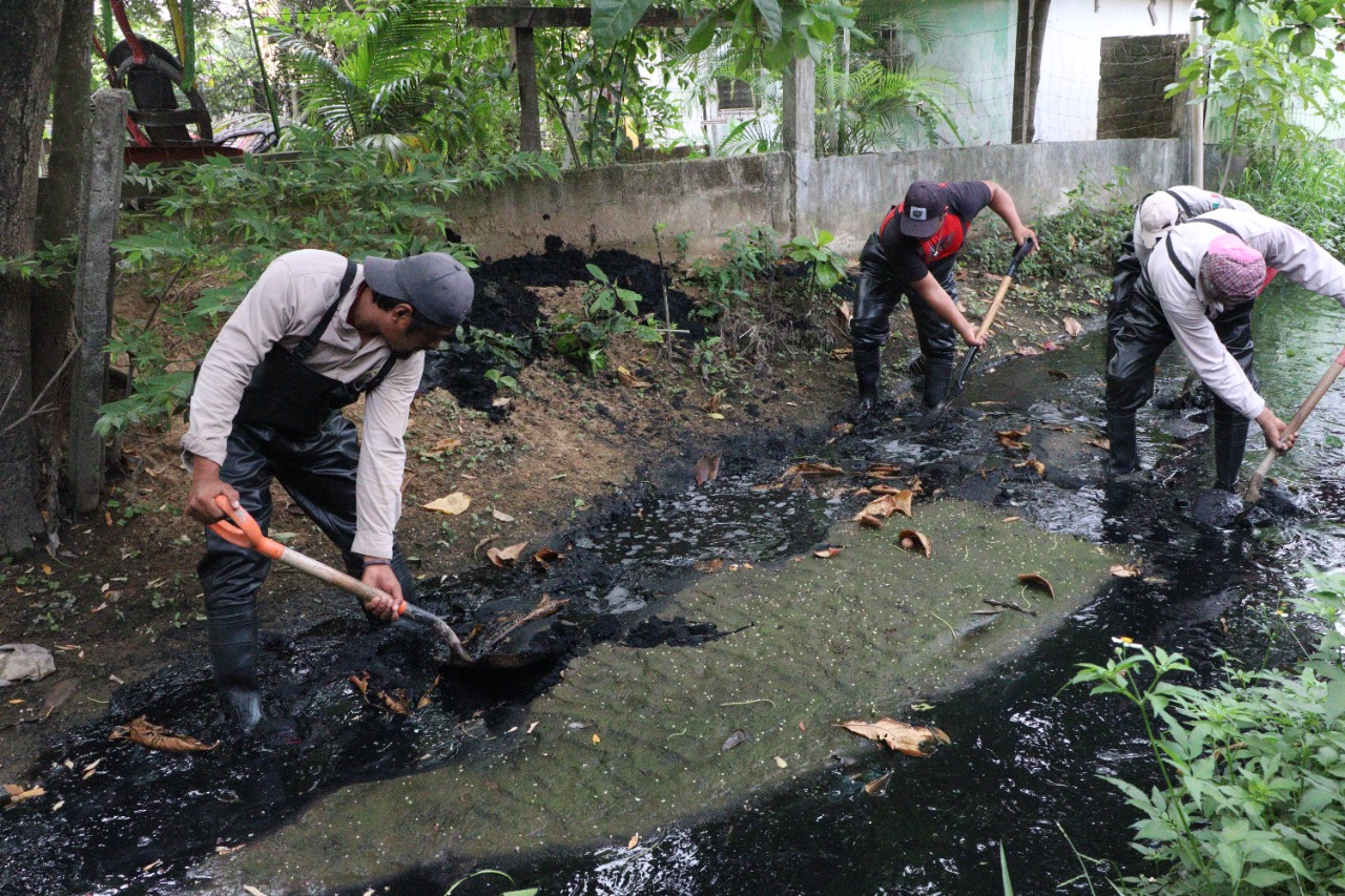 Nanchital, Ver. – Desde el inicio de la administración, que preside Esmeralda Mora Zamudio, personal del Ayuntamiento trabaja de forma permanente y programada en la limpieza de canales, así como desazolve de drenajes y alcantarillas, para evitar inundaciones y encharcamientos.