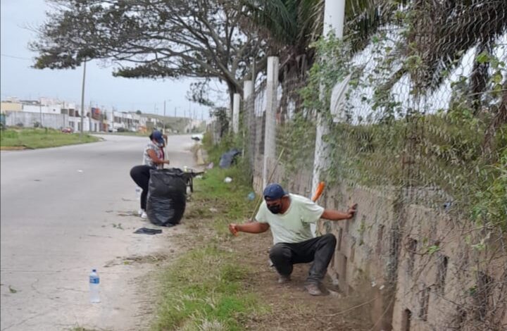 . – Aun con las inclemencias del tiempo por el Frente Frío 22, la mañana de este domingo vecinos se reunieron para limpiar las calles del Fraccionamiento Puerto Esmeralda en Coatzacoalcos.