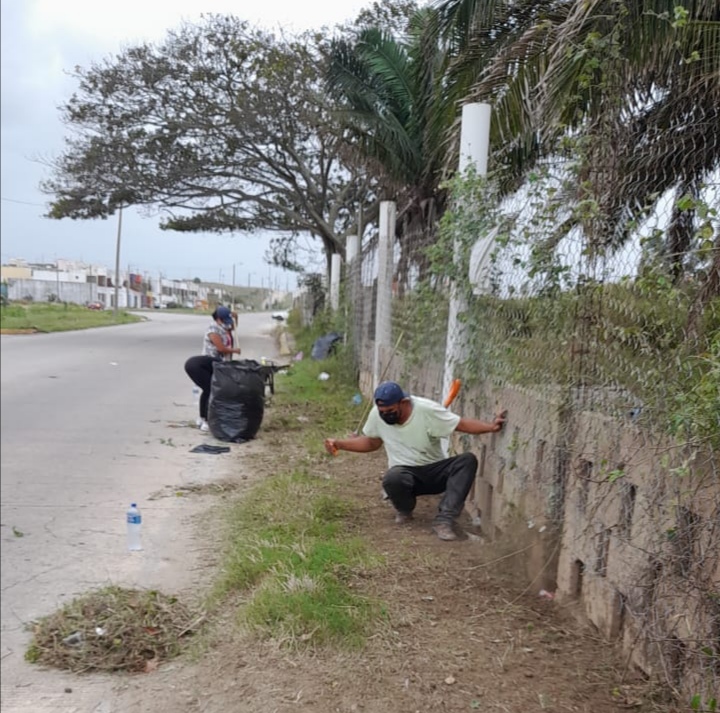 . – Aun con las inclemencias del tiempo por el Frente Frío 22, la mañana de este domingo vecinos se reunieron para limpiar las calles del Fraccionamiento Puerto Esmeralda en Coatzacoalcos.