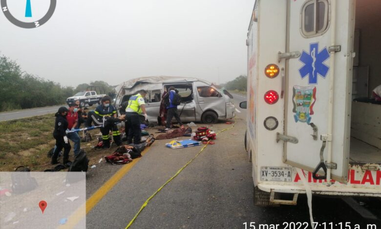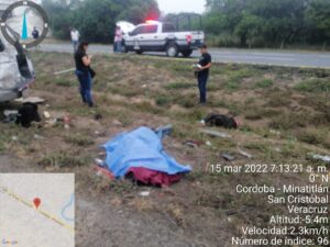 . – Trágica muerte encontraron 3 migrantes de origen cubano, la mañana de este martes, cuando viajaban a bordo de una camioneta marca Toyota Hiace, tipo van color gris, con placas UBP-1854 del Estado de Puebla, en la cual viajaban otros migrantes.