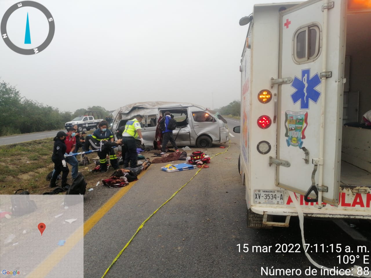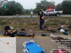 El percance fue en el kilómetro 89+500 de la autopista la Tinaja Cosoleacaque, a la altura de Carlos A. Carrillo, donde arribaron unidades de ambulancia de CAPUFE, Cosamaloapan y una más de Juan Rodríguez Clara, que regresaba de hacer un trasladó y al ver lo ocurrido, el conductor de nombre Ángel de Jesús Falcón, se unió para apoyar a estas personas migrantes cubanos y de Nicaragua, para canalizarlos a diferentes hospitales de la región.