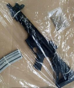 Al momento de realizar una inspección precautoria a la unidad que conducía, las fuerzas estatales le aseguraron un arma larga de fuego, municiones, un chaleco táctico, dosis de diversos enervantes, así como una cartulina con mensajes alusivos a grupos criminales.