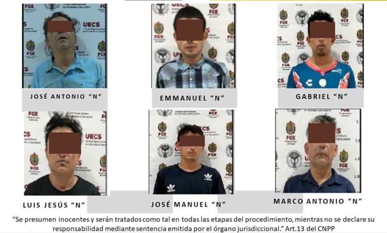 José Antonio “N”, Emmanuel “N”, Gabriel “N”, José Manuel “N” Luis Jesús “N” y Marco Antonio “N” fueron detenidos mediante un operativo que implementaron elementos de investigación en una colonia de esta ciudad.