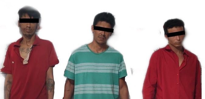 En el sitio, un empleado del establecimiento los señaló como los responsables de haber atracado la tienda, por lo que fueron detenidos los tres hombres, a quienes les aseguraron un PR24, dinero en efectivo, un pica hielo, dos cuchillos, cajas de cigarros y botellas de alcohol.