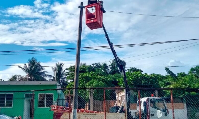 Ilumina Ayuntamiento parques y canchas de Coatzacoalcos.