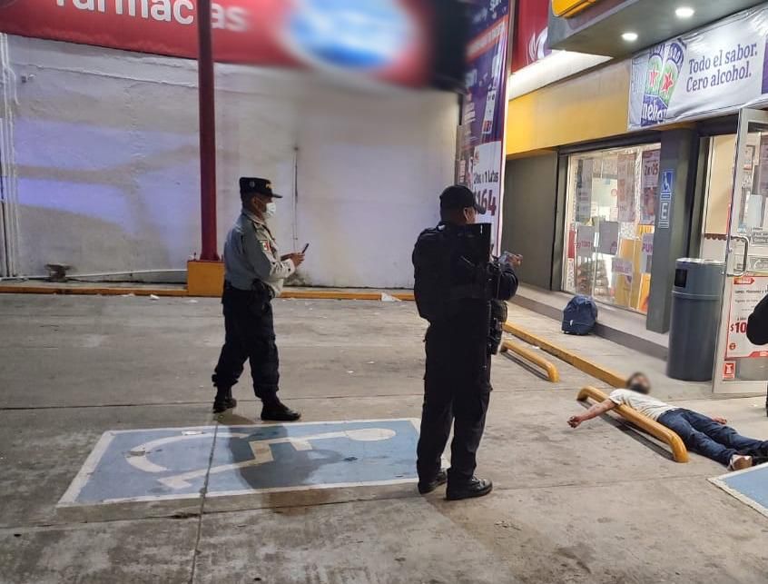 Policía del IPAX repele agresión y evita asalto en una farmacia de Minatitlán.