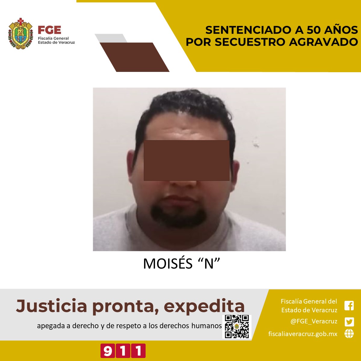 OZULUAMA, Ver; 5 de mayo 2022.- La Unidad Especializada en Combate al Secuestro presentó pruebas contundentes que sustentaron el dictamen de un Juez a lasentencia condenatoria en contra de Moisés “N” por su responsabilidad en el delito de secuestro agravado.