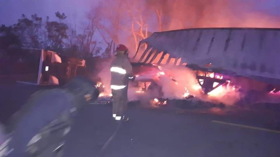 Cabe mencionar que el choque provocó que se incendiaran las unidades, por lo que el cuerpo de bomberos de Tierra Blanca, acudio a sofocar el incendio, donde lamentablemente perdieron la vida una mujer un menor de edad y al parecer el conductor del tráiler.