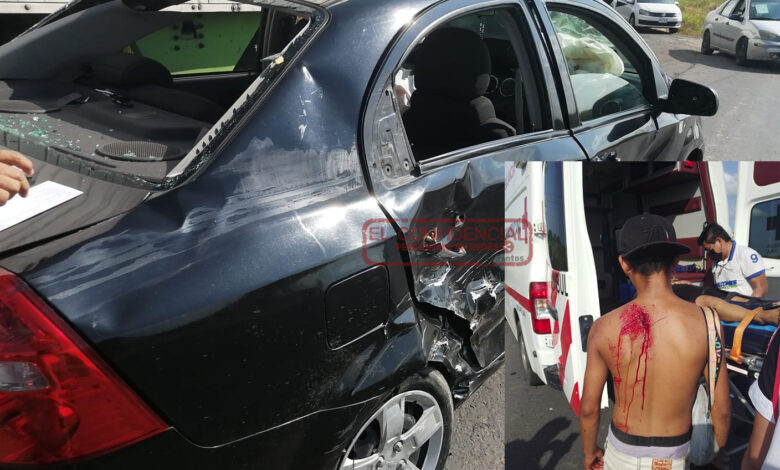 El siniestro fue reportado cerca de las 5 de la tarde de hoy Lunes cuando la pareja que viajaba en una motocicleta Italika 125c en color gris, cayo al asfalto al chocar con la unidad de la marca Chevrolet que circulaba de Minatitlán a Coatzacoalcos y la cual recibió el impacto en su costado derecho, siendo auxiliados por automovilistas que solicitaron el auxilio de paramédicos de la cruz roja quienes arribaron para atender a ambos lesionados que minutos después fueron trasladados a un hospital de la ciudad.