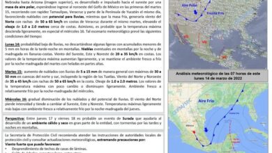 Xalapa, Ver., 14 de marzo de 2022. *Norte con rachas máximas de 50 a 65 km/h. *Aumentan las condiciones para…